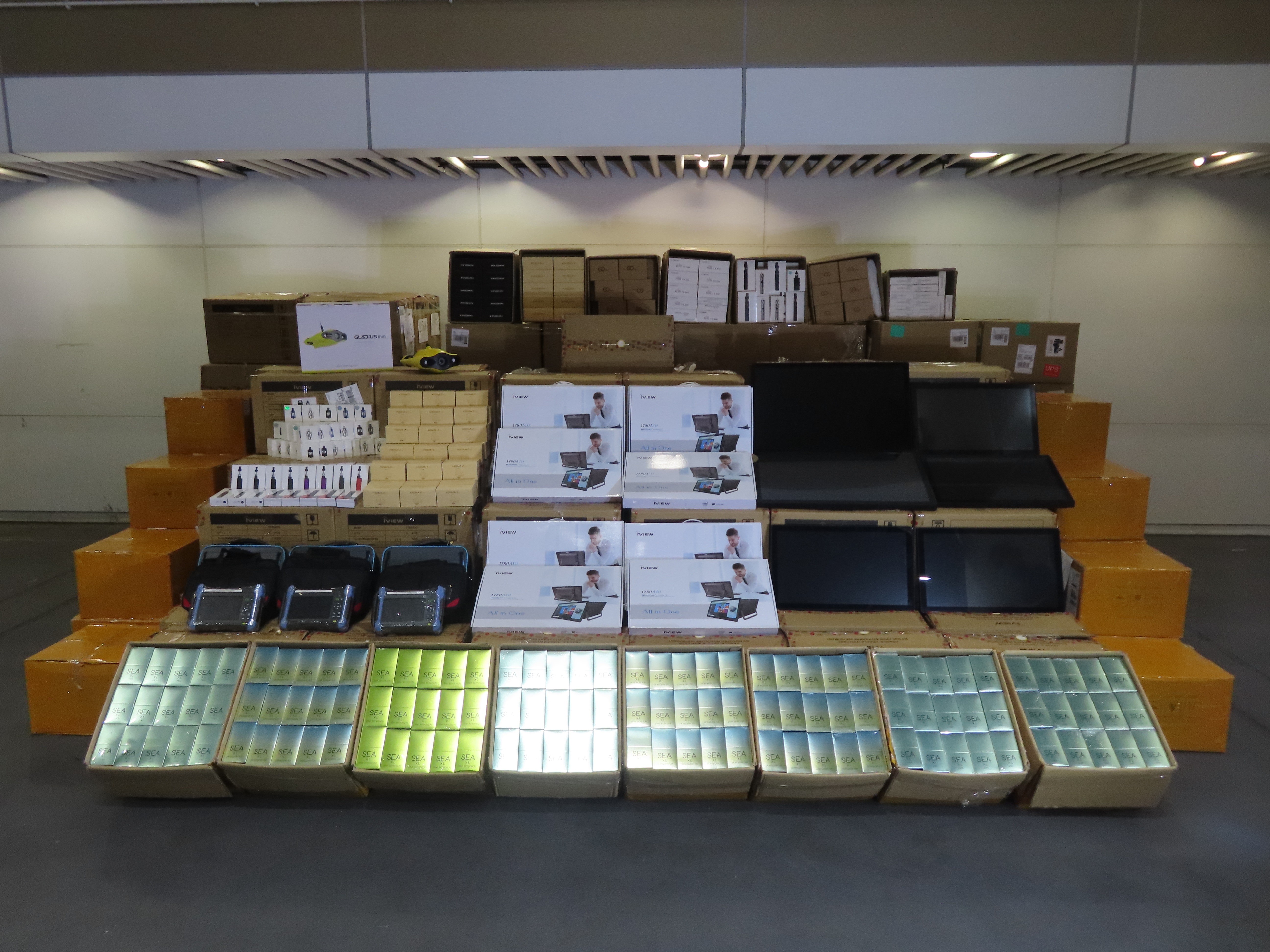 海關表示,人員當晚(5日)在落馬洲管制站截查一輛入境貨車,在貨斗內發現該批懷疑走私貨物,當中包括720部可攜式顯示器、550部一體式電腦、約1.85萬支電子煙約7.8萬毫升懷疑含有尼古丁成分煙油;人員並拘捕45歲男司機。