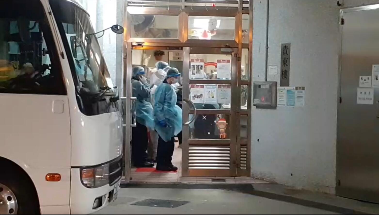 東頭邨貴東樓部分住戶14日晚開始撤離至檢疫中心(圖:fb直播)