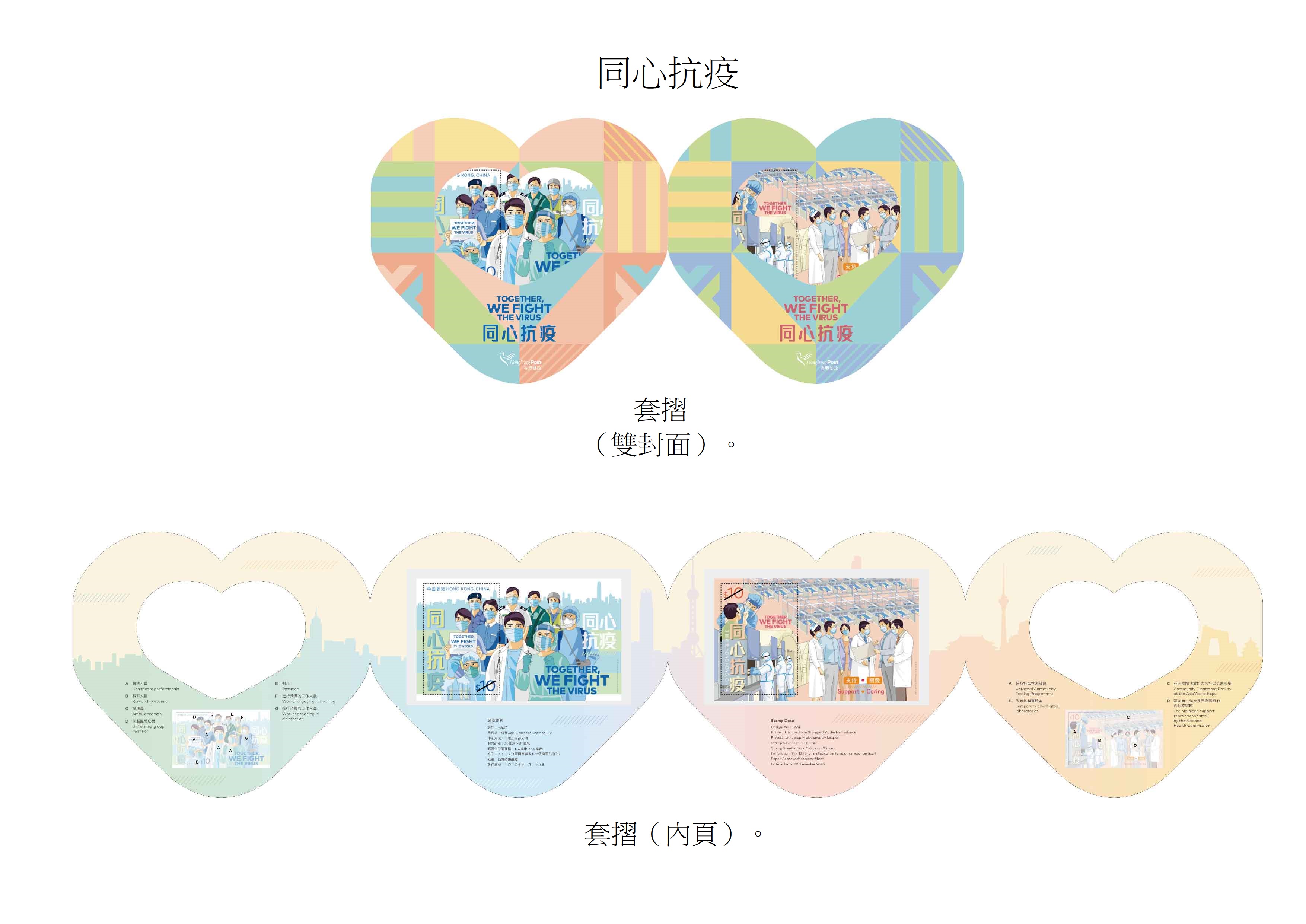 香港郵政表示,這次發行的兩款郵票小型張,其中一款描繪一群與香港人並肩作戰,並致力維持有需要服務的抗疫英雄,他們包括醫護人員、科研人員、站在前線的救護員、堅守檢疫中心的制服團體成員、派遞載有防疫物資郵件的郵差,以及為社區進行消毒和清潔的工作人員;至於另一款郵票小型張則呈現中央政府對香港的關愛。國家衞生健康委員會籌組的內地核酸檢測支援隊協助本港進行普及社區檢測計劃,中央政府更支援香港在亞洲國際博覽館毗鄰土地興建臨時醫院,並進一步在亞博館內增設社區治療設施,展示中央政府對香港抗疫工作的全力支持。