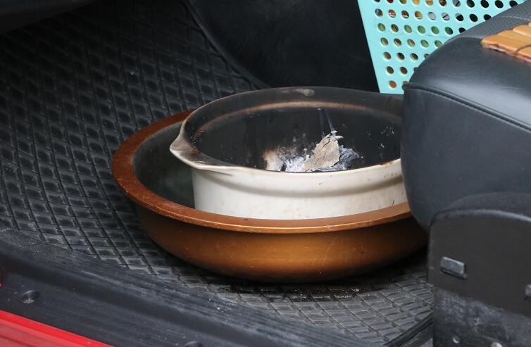 警員在的士前座乘客位檢獲一盆燒過的炭,沒有檢獲遺書,初步相信疑受財務問題困擾,事件相信無可疑。死因有待驗屍後確定。(記者區天海)