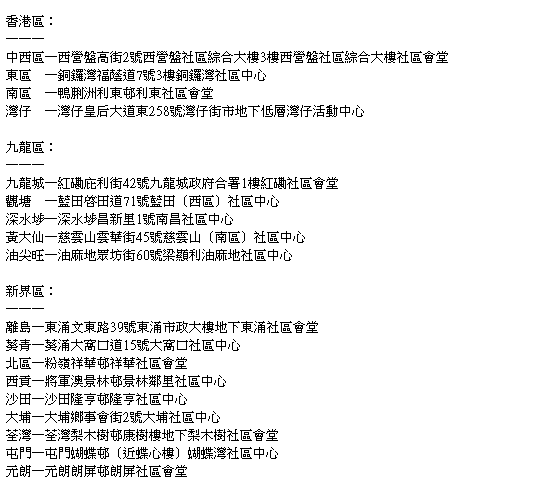 民政事務總署今日(1月1日)開放的18間臨時避寒中心,當中有4間位於港島、5間位於九龍,而9間則位於新界。