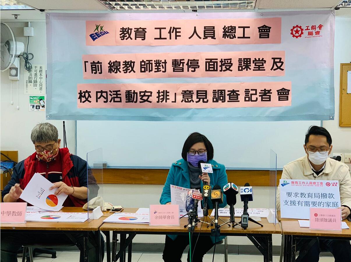 工會建議教育局,應盡快公布小學呈分試與中學文憑試調節方案,減輕本學年小五小六、中五中六等學生分別面對呈分試與文憑試的壓力;減輕前線教師非教學工作的壓力,例如延遲教師150小時持續進修的要求,以及要有效推行網上教學,需要額外撥款支援有需要的家庭,例如:購買平板電腦、數據卡等,好讓他們不會輸在起跑線之上。