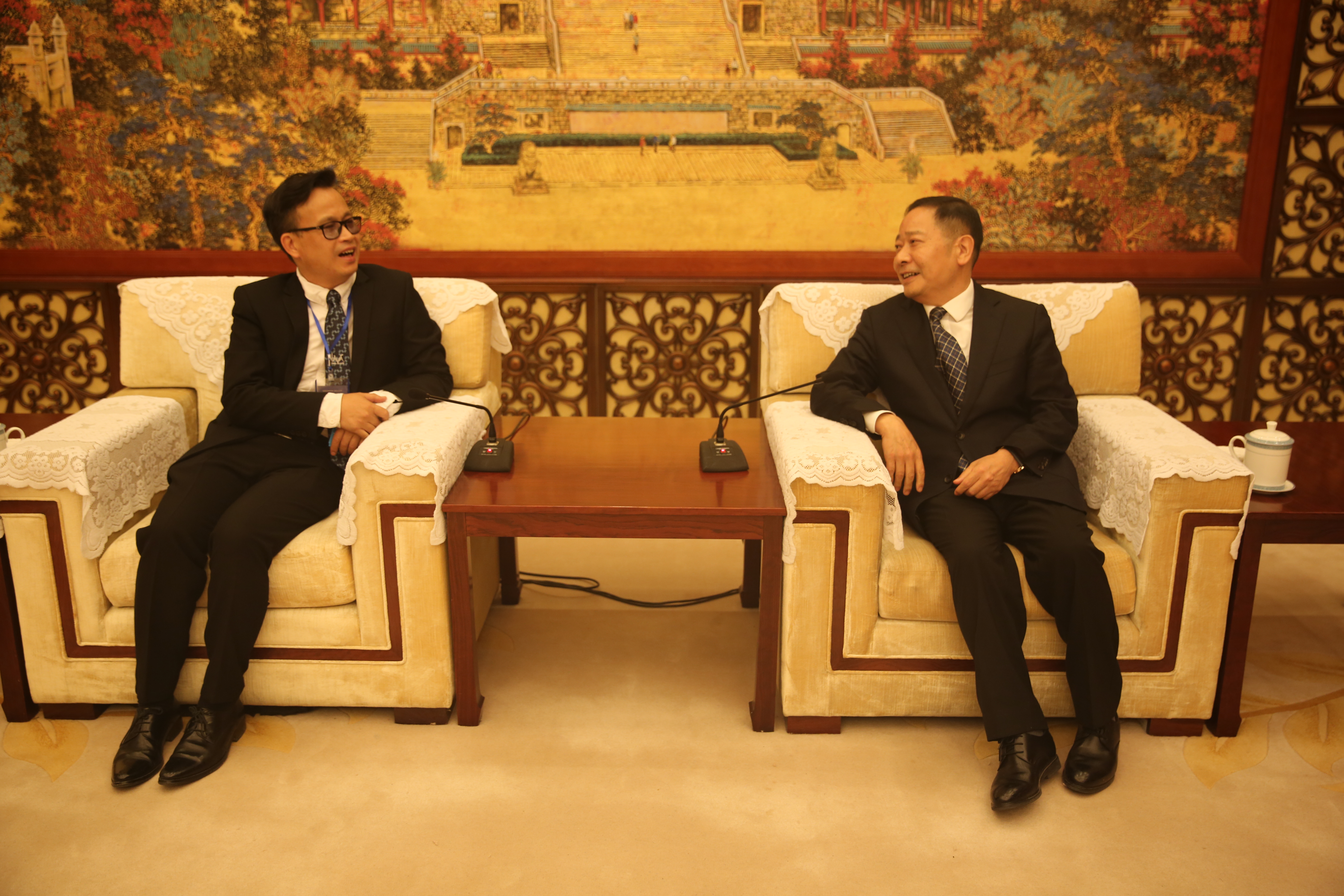 黃喜潤(左)與江西省委常委、南昌市委書記殷美根(右)座談會上交流。