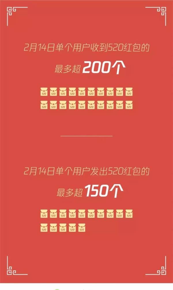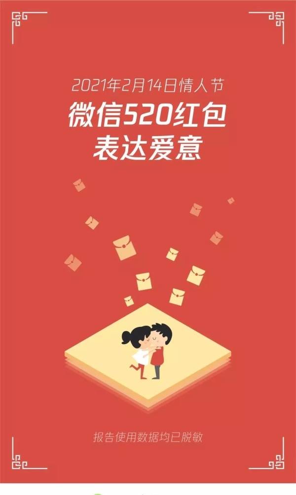 2月15日晚間「微信派」微信公眾號公布情人節當天「520紅包」的相關數據。