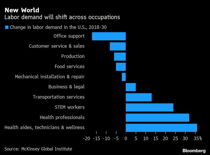由於新冠肺炎大流行的後遺症摧毀了勞動力市場中的大量低薪職位,到2030年,十分之一的美國工人(共約1,700萬)可能將被迫離開工作崗位並從事新的職業。