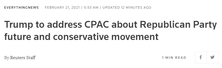 據悉,這是他自上個月卸任以來的首次重大露面。CPAC會議將於2月25日至28日在佛羅里達州奧蘭多舉行,特朗普將在最後一天發表講話。