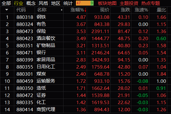 從盤面上看,鋼鐵、鈦白粉、機場航運等板塊漲幅居前,環保工程、第三代半導體、數字貨幣等板塊跌幅居前。