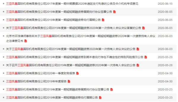 實際上自2019年以來,三亞鳳凰機場債券兌付方面已經出現困難,多次展期和遞延支付。