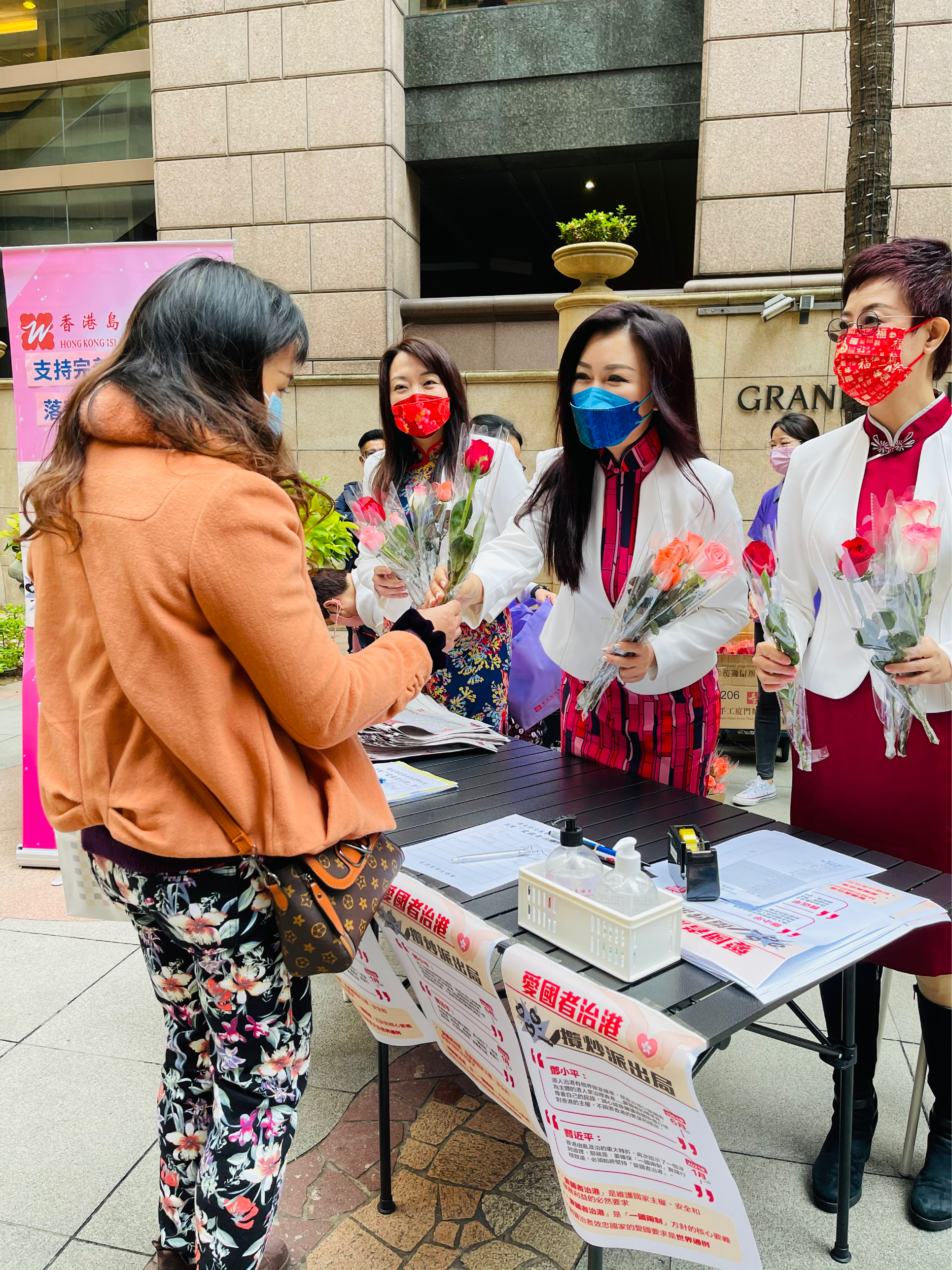 香港島婦女聯會在三八婦女節發起「旗袍街站簽名打卡」活動,響應全國婦聯號召,分別在上環新紀元廣場、上環文化廣場、銅鑼灣F出口渣甸坊等多個地點簽名倡議,用自己的實際行動帶領各界人士支持人大決議簽名,傳遞愛國愛港正能量,過一個更有意義的三八婦女節。