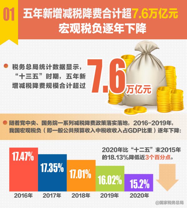 五年新增減稅降費合計超7.6萬億元 宏觀稅負逐年下降