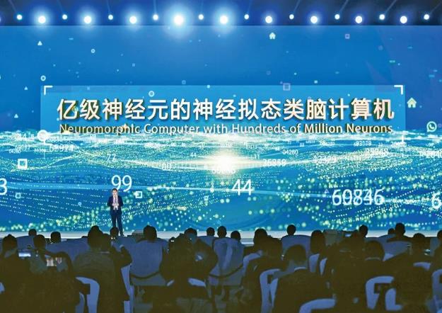 圖為浙江大學、之江實驗室代表在發布活動上介紹「億級神經元的神經擬態類腦計算機」。新華社記者 黃宗治/攝