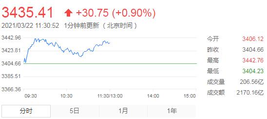 3月22日,星期一,農曆二月初十。今日早盤,A股三大指數接近平盤開出,開盤後各股指均走出快速衝高行情,創指一度漲逾2%。不過,之後兩市開始震蕩調整。10點半之後,股市又穩步走高。總體看,今日早盤,個股漲多跌少,賺錢效應有所回升,碳中和及相關板塊持續活躍。此外,電力行業、環保工程、園林工程、公用事業、券商信託等漲幅靠前,化纖行業、工藝商品、貴金屬、安防設備、船舶製造等相對低迷。