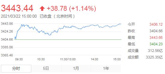 3月22日,星期一,農曆二月初十。今日早盤,A股三大指數接近平盤開出,開盤後各股指均走出快速衝高行情,創指一度漲逾2%。不過,之後兩市開始震蕩調整。10點半之後,股市又穩步走高。總體看,今日早盤,個股漲多跌少,賺錢效應有所回升,碳中和及相關板塊持續活躍。此外,電力行業、環保工程、園林工程、公用事業、券商信託等漲幅靠前,化纖行業、工藝商品、貴金屬、安防設備、船舶製造等相對低迷。午後,滬指和深成指繼續延續小幅盤升走勢,創業板指則維持震蕩走勢。碳中和概念持续发酵,两市逾百股涨停,临近收盘指数再度上扬。