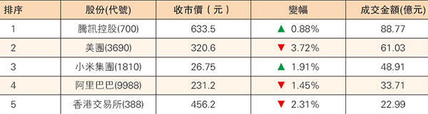 22日5大成交股份表現
