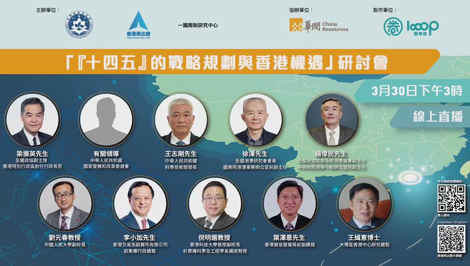 在剛結束的兩會上,全國人大四次會議正式通過《「十四五」規劃綱要》。全國港澳研究會、香港再出發大聯盟、一國兩制研究中心將於下周二(30日)共同舉辦「十四五」規劃線上研討會,邀請發改委、科技部等重要官員為香港解讀規劃和香港機遇。