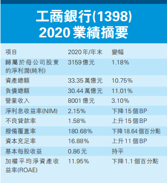 建行年報顯示,2020年,該行資產負債規模實現較快增長,集團資產總額28.13萬億元,增幅10.60%;其中發放貸款和墊款淨額16.23萬億元,增幅11.62%。該行淨利潤貢獻主要來自個人貸款業務的大幅增長,該行去年主動加快風險暴露,不良率1.56%,較上年上升0.14個百分點,減值損失總額1899.29億元,較上年增長16.15%。