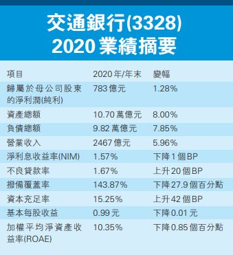 去年,交通銀行資產總額突破10萬億元,客戶貸款較上年末增10.26%至5441.49億元。交行董事長任德奇在年報致辭中指出,該行引導信貸資源流向綠色發展領域,綠色類授信餘額佔比99.63%,同時寄望交行把握長三角一體化發展的新機遇,加快建設成為「長三角的龍頭銀行」。