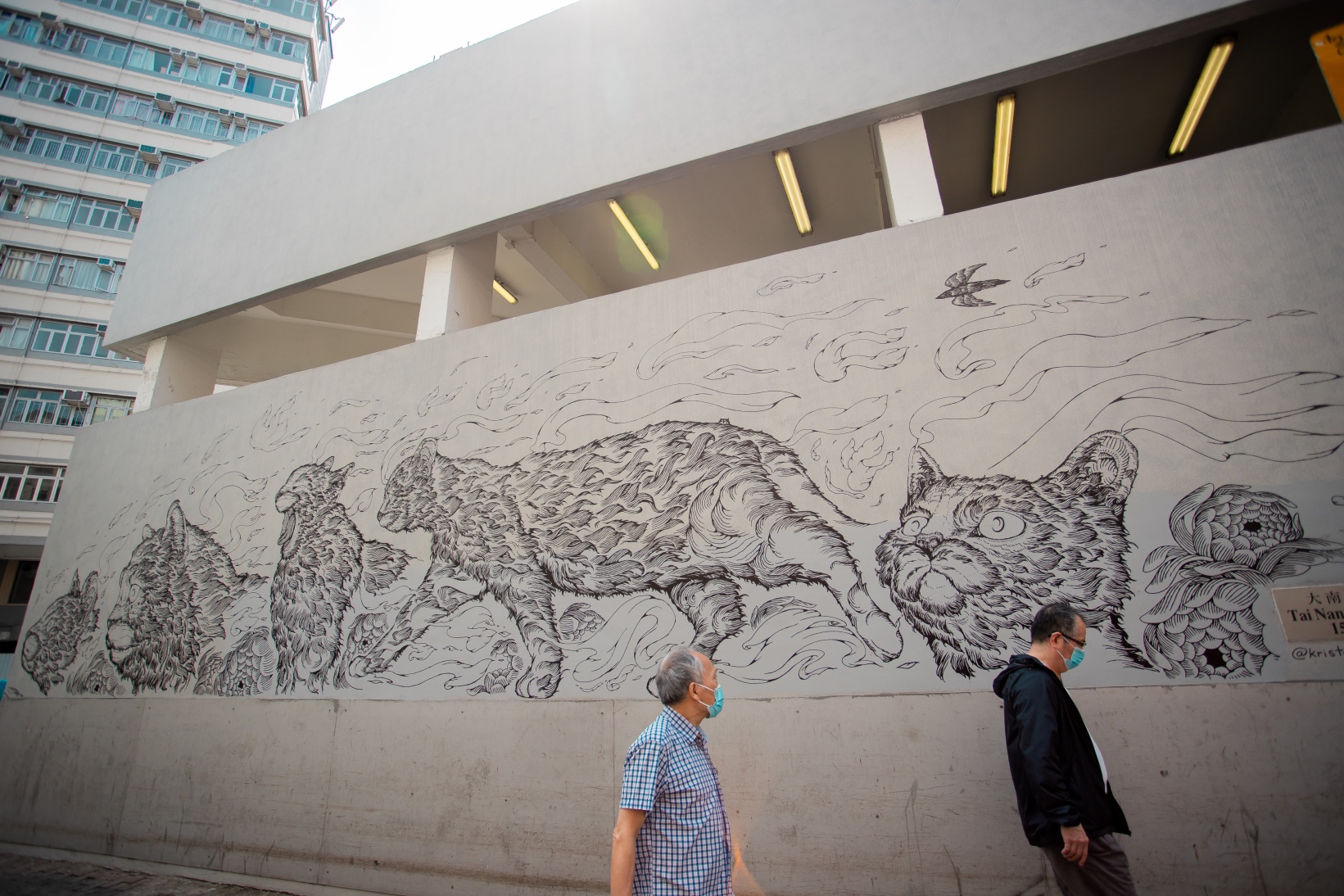 20米巨型壁畫《人人和喵dd》,為街頭添上藝術氣息。