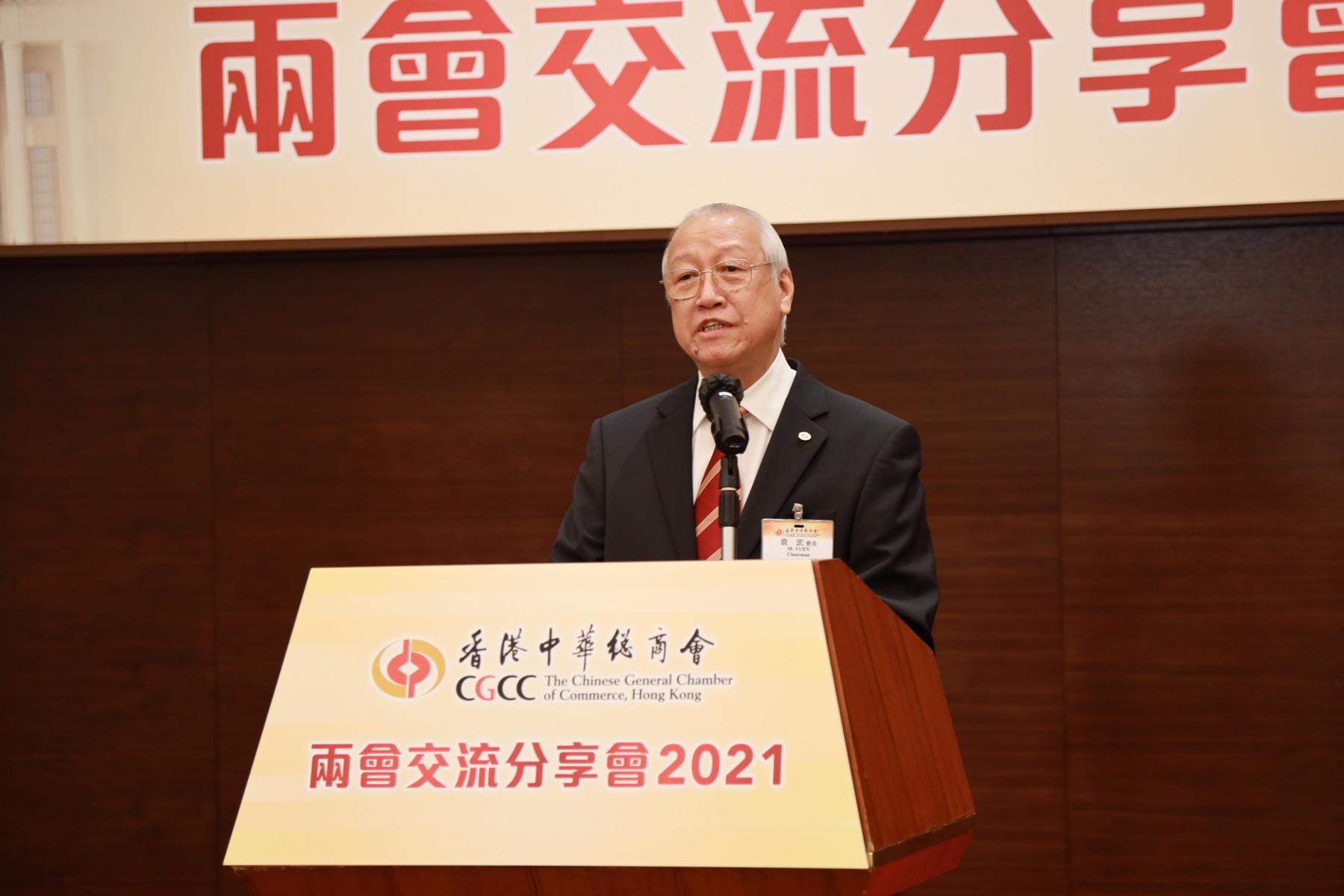 他表示,中央主導完善香港選舉制度,是為彌補現行選舉制度漏洞,確保「一國兩制」行穩致遠,確保香港長治久安和長期繁榮穩定。他希望香港工商界以兩會精神為指引,同心把香港建設好。此外,工商界要積極就完善選舉制度配合本地立法,帶頭支持特區政府依法施政,帶頭推動香港融入國家發展大局,堅定對國家和香港未來發展的信心,確保「一國兩制」全面準確貫徹落實。