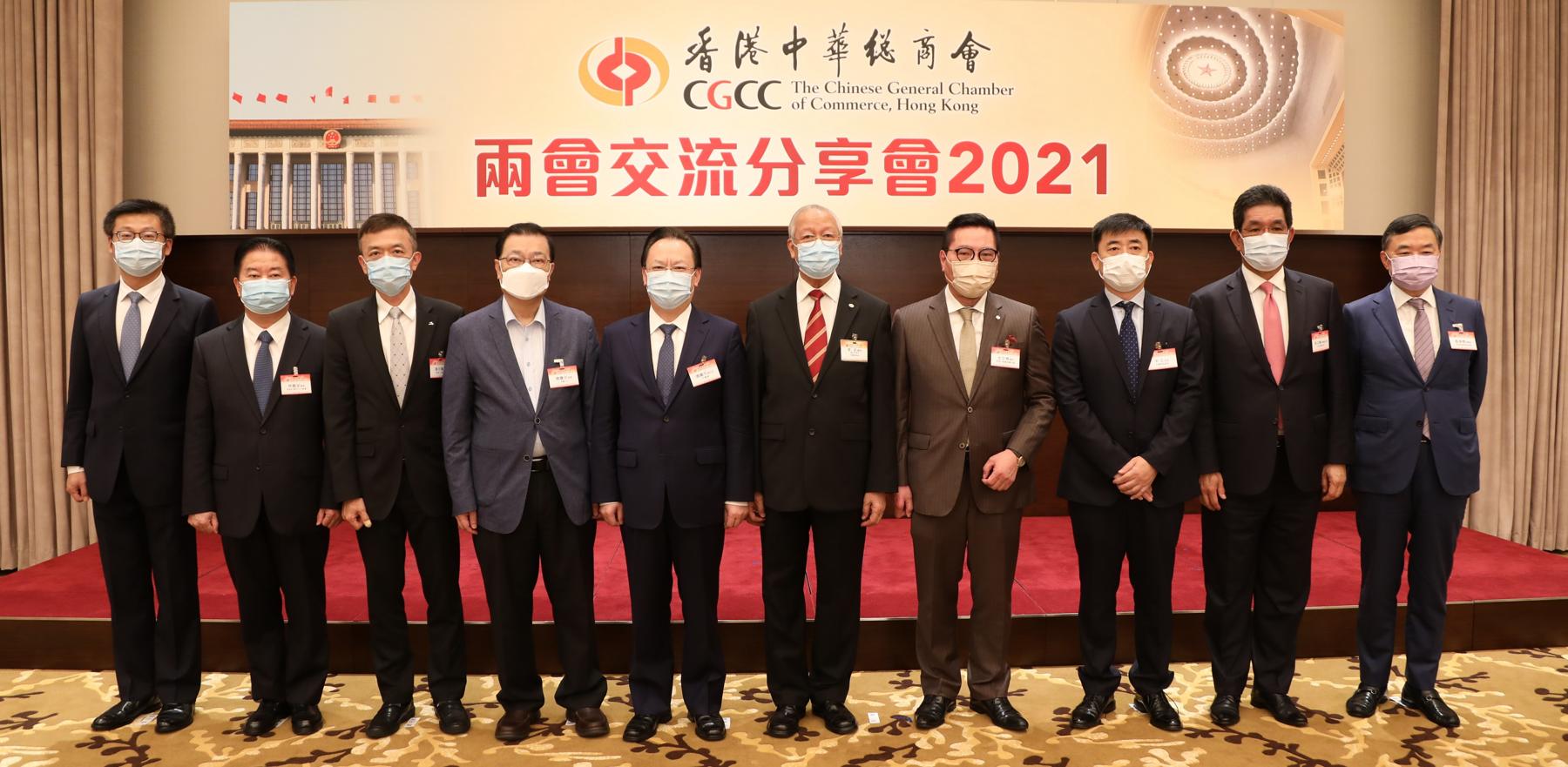 分享會設對談環節,港區人大代表、中總李應生、胡曉明副會長,廖長江常董,以及全國政協委員曾智明、王惠貞、陳仲尼、張學修副會長,方文雄榮譽會長,聯同譚耀宗交流感受。嘉賓對今年兩會均有深刻體會,特別是積極推動現代化、高質量發展,致力改善社會民生,對國家未來發展前景充滿信心。李應生強調,國家無論在防疫、精準扶貧、創科發展、關顧香港等各方面工作,均達到非常高的水平。