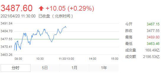 截止午间收盘,沪指涨0.29%,报3487.6点,深成指涨0.45%,报14181.45点,创业板指涨0.67%,报2918.07点。沪深两市成交额5211.5亿元;北向资金实际净流出5.56亿元。两市57股涨停,8股跌停(含ST)。