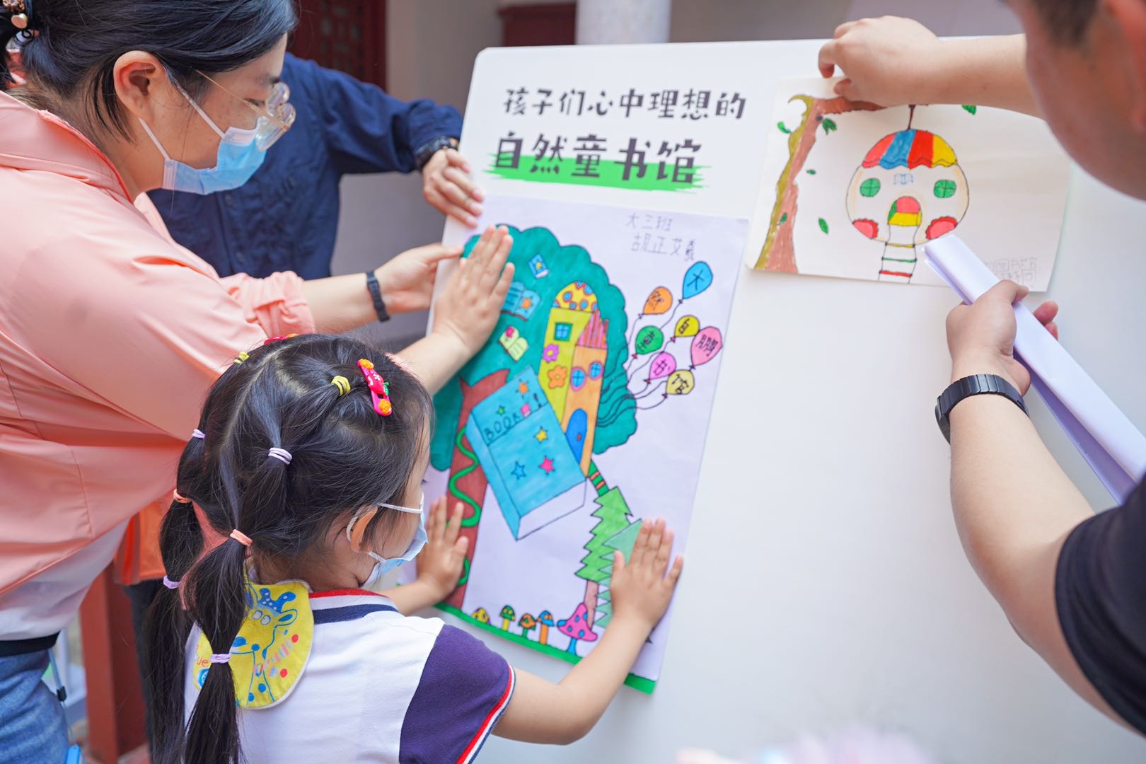 儀式上,大鵬自然童書館發起人南兆旭分享了大鵬自然童書獎和大鵬自然童書館的品牌亮點和發展關係,大鵬新區文體旅遊服務中心主任田娟娟介紹了自然童書館和所城博物館相結合的運營新思路。王繼良和南兆旭一起揭開「一個自然童書館的誕生」圖書模型,宣布大鵬自然童書館項目正式啟動。大鵬中心幼兒園的小朋友們還展示了他們心目中的自然童書館繪畫作品。