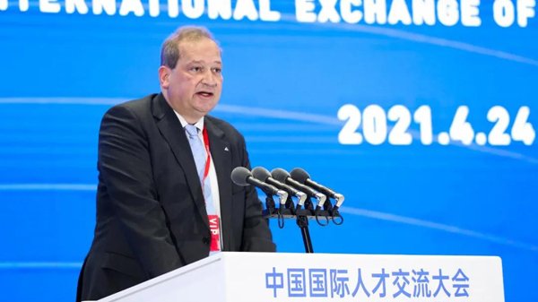 4月24日上午,由科學技術部(國家外國專家局)和深圳市人民政府共同主辦的第十九屆中國國際人才交流大會在深圳會展中心開幕。科學技術部部長、黨組書記王志剛,廣東省委副書記、深圳市委書記王偉中,深圳市委副書記、市政府黨組書記覃偉中,廣東省副省長王曦,科學技術部黨組成員陸明,以及大會特邀嘉賓中國政府友誼獎獲得者、深圳先進技術研究院首席科學家、瑞士科學院院士霍斯特•梵格,中國政府友誼獎獲得者、德國工程院院士葛興福,德國萊茵TÜV集團大中華區高級副總裁陶思騰出席深圳論壇暨大會開幕式。陶思騰先生、梵格院士、王曦副省長、王偉中書記等先後致辭,王志剛部長作主旨演講並宣布大會開幕。