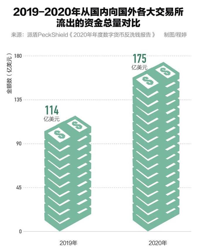 根據區塊鏈安全公司 PeckShield 發布的「2020年年度虛擬貨幣反洗錢報告」顯示,2020年,中國未受監管的跨境流動虛擬貨幣價值達175億美元,較2019年增長51%,且仍在快速增長。激增的洗錢「新通道」,給中國反洗錢機制带來巨大的挑戰。