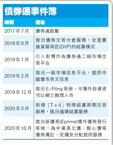 「債券通」於2017年7月3日啟動至今已接近4年,但只開放境外投資者買賣內地債市的「北向通」,「南向通」一直未推出。財政司司長陳茂波早前表示,期望「南向通」可在今年下半年推出。此外,金管局總裁余偉文早前稱,正就「南向通」與人民銀行在投資者、產品品種等方面溝通,目標是今年下半年初出台。