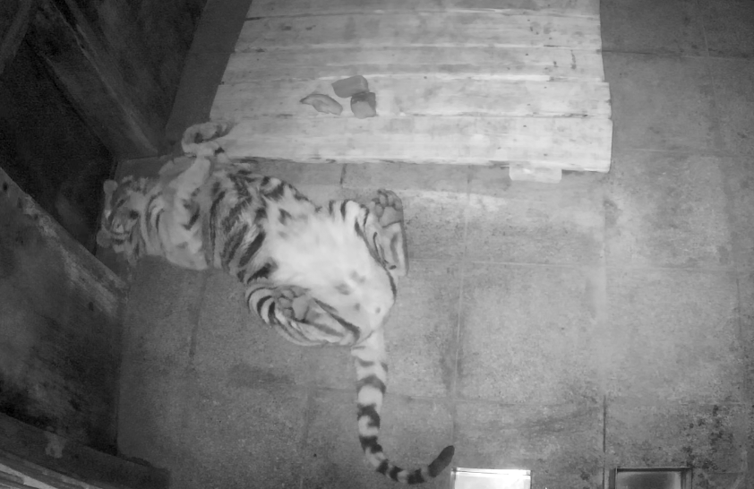 目前,老虎正在進行全封閉隔離檢疫觀察, 由專人進行24小時的飼餵和觀測。期間,中心會對老虎每天的飲食、排便、吼叫等行為進行紀錄和觀測,下一步 將組織專家對它的健康狀況各項指標進行評估。