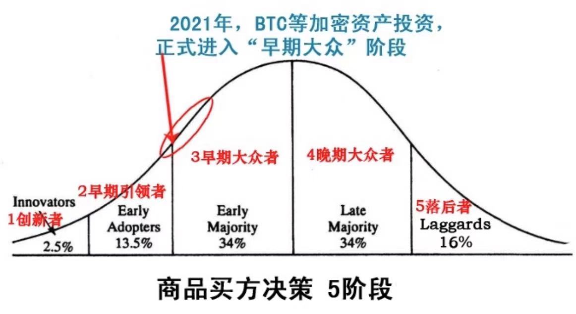 虛擬資產在新經濟下的爆炸威力吸引了全球投資者的注目。下跌之時投資者也毋忘你好因素:(一)2020至21年受疫情的影響下,大部分政府央行都實施量化寬鬆的貨幣政策來挽救經濟,使金融市場資金充裕,投資者的風險胃納程度也增加了,有助各類金融資產及虛擬資產價格的提升;(二)機構投資者投資組合配置的需求,組合都加入虛擬資產,成為比特幣的中長期持有者;(三)比特幣的供應有限現時已開採89%,剩下的11%最終到2140年屆滿,總共2100萬個比特幣也就全部分配完了。在供應有限需求不斷增加底下刺激價格往上;(四)市值第二大虛擬貨幣乙太幣(Ethereum)在經過幾個交易日的強勁反彈後,4月27日上升至接近2700美元的紀錄高點,消息指歐洲投資銀行(EIB)計劃在乙太坊區塊鏈網絡上銷售「數碼債券」。EIB計劃推出規模1億歐元、兩年期的數碼債券,由高盛、Banco Scantander和法國興業銀行負責銷售。此外,摩根大通計劃推出比特幣管理基金,這一消息不僅振奮數碼貨幣市場,亦顯示被許多人視為投機性投資的比特幣,逐漸為機構承認其合法性(筆者也加入追幣行列)。上述消息也加速近期大跌後比特幣價格的回升;(五)踏入21世紀,歐美金融機構不斷推陳出新推動比特幣的普及化、公信力及合法性等地位。由開始成立虛擬貨幣的「線上代收平台」、「場外交易(OTC)」、「價值交易(差價合約CFD)及 「ETF」等;還有,協力廠商支付平台PayPal接受比特幣、乙太幣及萊特幣等作為支付;再者,隨着Coinbase在美國成功上市、歐洲投資銀行發行的數碼債券、摩根大通推出比特幣管理基金等,虛擬貨幣的認受性又進一步被提高,加上金融機構準備發行「微型比特幣合約」,估計現時比特幣的投資可能已進入【商品買方決策】(附圖)的第三階段,大眾投資者將會陸續蜂擁入市參與買賣,將會增加虛擬資產市場的交易平台深度、流通性活躍度、收窄買賣差價及降低佣金成本等效益。