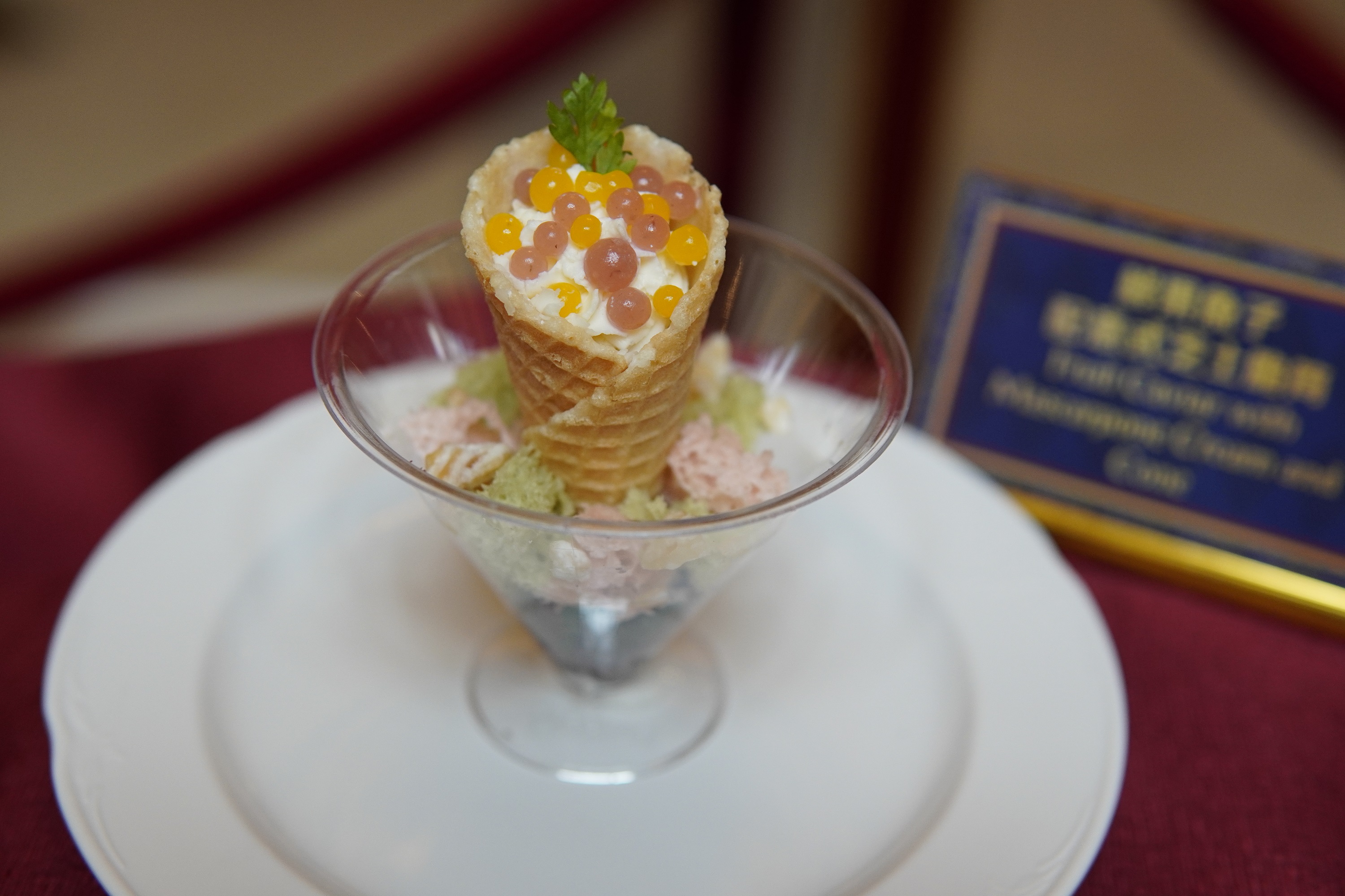 七、「鮮果魚子配意式芝士脆筒」驟眼望過去恍如甜筒一樣,一口咬下去,魚子口感般的士多啤梨及芒果波波別具鮮果的清新香甜,下層是意式芝士,兩者相互平衡,甜而不膩。建議大家「打卡」後要盡快吃掉,因為甜筒皮會變得軟身、不香脆,記者就是忙着拍照錯過進食最佳時機。