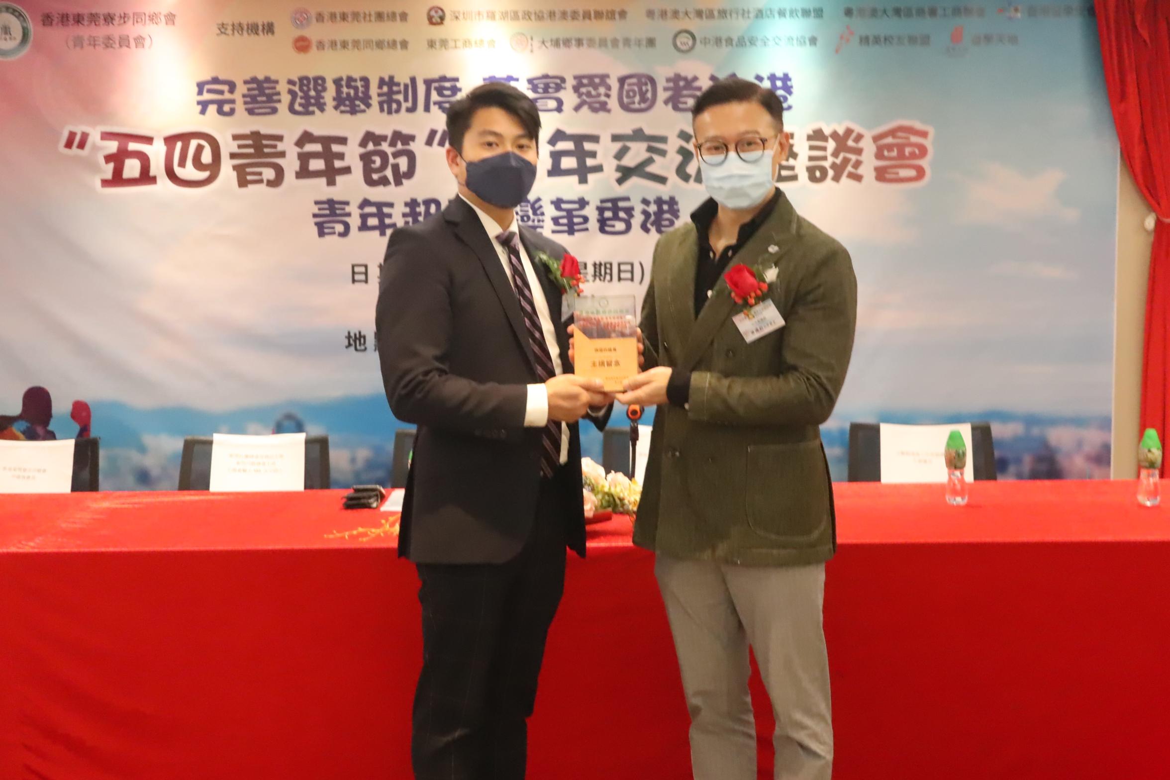 香港東莞寮步同鄉會青年委員會日前假尖東南洋中心四樓香港東莞社團總會會所舉行「完善選舉制度 落實愛國者治港『五四青年節』青年交流座談會」及該會「青年起動 變革香港」的揭牌儀式。行政會議成員、立法會議員張國鈞,東莞社團總會常務副主席、東莞同鄉總會主席王賜豪,中聯辦港島工作部綜合處處長牛華,東莞社團總會常務副主席尹銳全,香港東莞寮步同鄉會會長尹偉強、主席劉松新等主禮揭牌儀式。