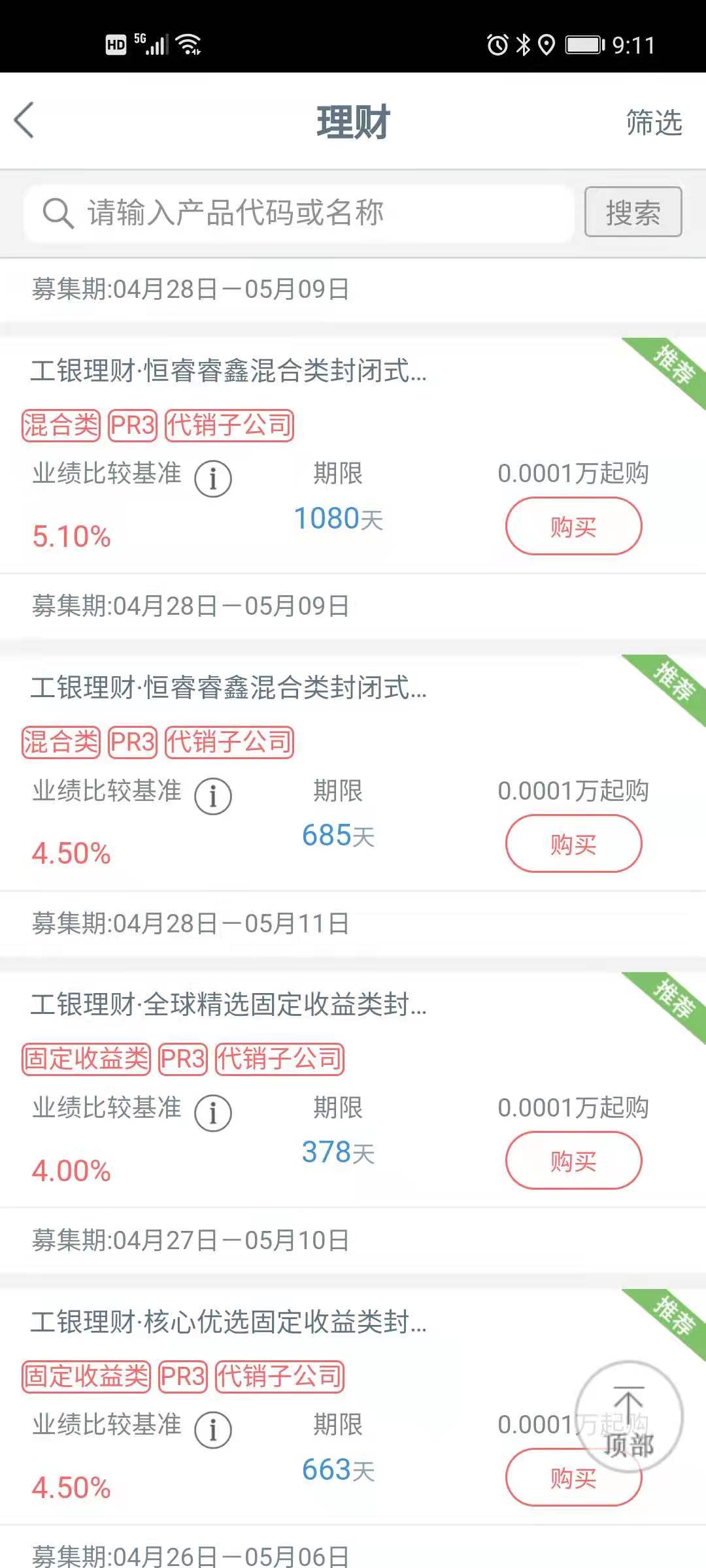 工商銀行非保本封閉式理財截圖