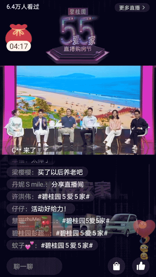 為提升購房者觀看直播的趣味,碧桂園邀請一眾明星大咖加盟坐鎮。5月5日晚,金牌主持沈濤、著名演員陳數、犀利名嘴傅首爾同聊家庭生活、風物人情的同時,也向坐鎮直播現場的碧桂園總裁們「砍價」,為購房者爭取超大折扣和驚喜福利。