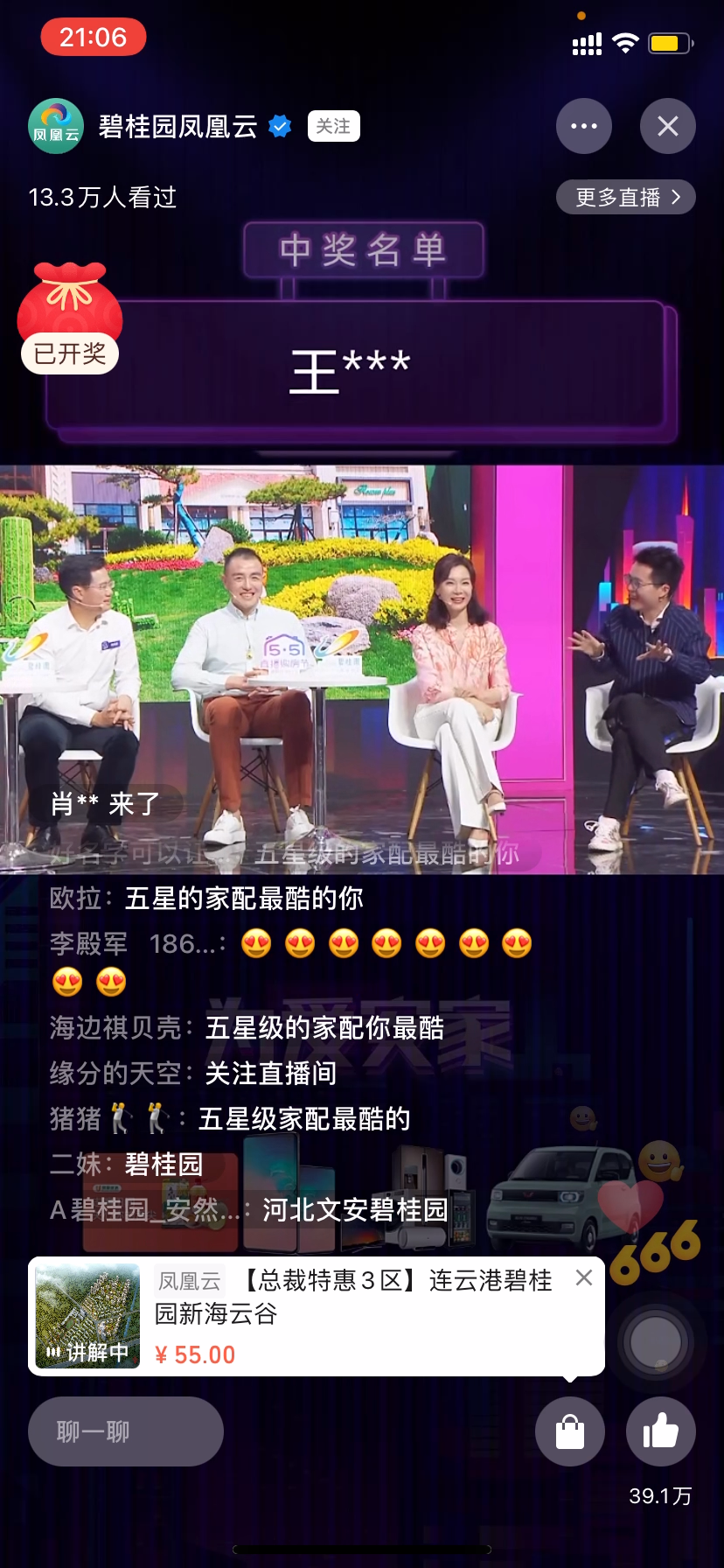 此次始於4月25日的購房節,在5月5日晚間明星大咖助陣的直播中直抵高潮。知名主持人沈濤,攜著名演員陳數、綜藝大咖傅首爾及地產大V劉德科一同坐鎮「碧桂園鳳凰雲」微信視頻號主直播間,談笑風生間,為粉絲帶來紅包連連,也為購房者爭取到更多驚喜福利。本次,碧桂園總部聯動26個區域視頻號矩陣直播,總曝光1.6億,最高在線人數101.6萬人,參與福袋和互動人數為103.6萬,直播間內,成功秒殺房源275套,領券5127張。