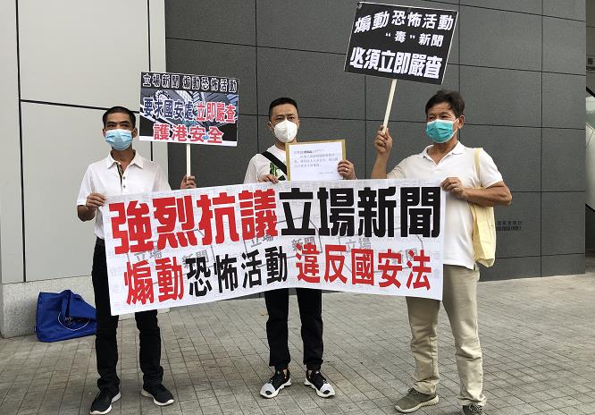 另一批市民指,對於一切有損害國家損害香港利益的「毒新聞」,絕對不能容忍,必須追究到底。強烈抗議立場新聞煽動恐怖活動,威脅港人人身安全,違反國安法,要求立即嚴查。(記者 馮煒強)