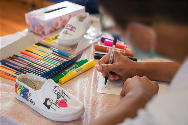 自小在單親家庭中成長的阿民與母親的關係因社會暴力事件而惡化,被定罪後更迷失方向,自覺人生一片灰暗。他感激懲教人員一直從旁協助,令他看到一線曙光。這次活動除了讓他反思犯罪的沉重代價,亦可以讓他以繪畫的方式,盡情地把心裏虧欠母親和無法釋懷的感受表達在小鞋子上。此時此刻,一筆一畫更勝千言萬語。
