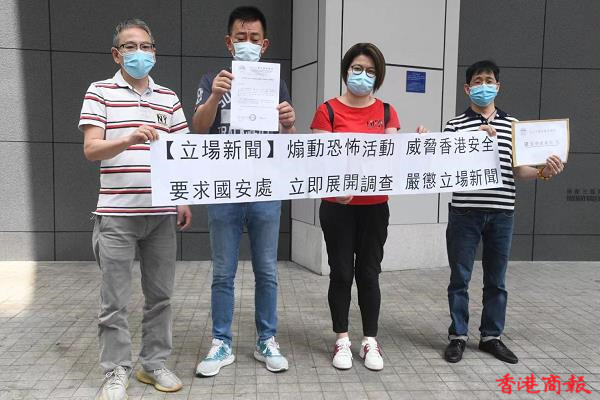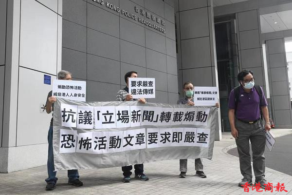 「的士司機從業員總會」致信總警,要求國安處立即展開調查,嚴懲「立場新聞」。亦有市民抗議「立場新聞」轉載煽動恐怖活動的文章,斥其「播毒」禍港,威脅港人人身安全,強烈要求警方嚴正執法,撲滅禍港「獨報」。(記者 蔡啟文攝)