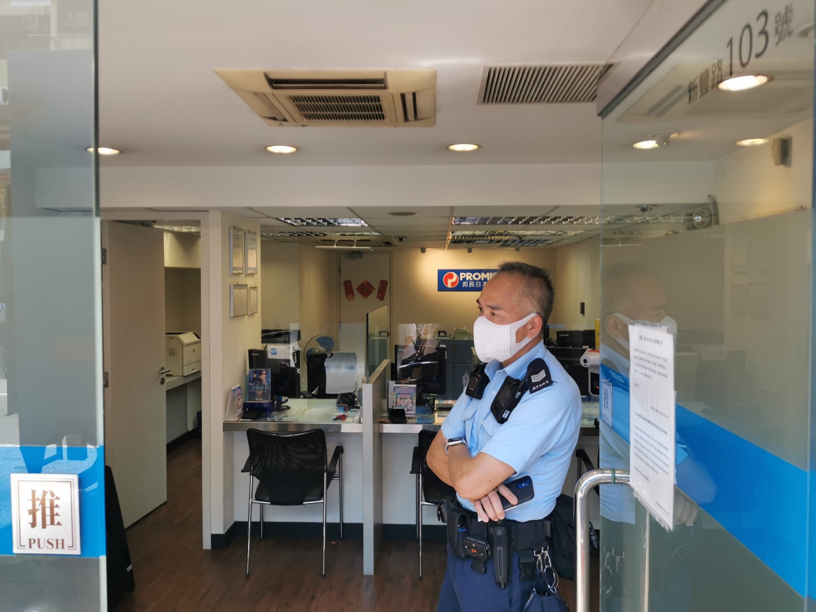 警方衝鋒隊迅速趕抵,將涉案男子拘捕,女職員無礙毋須送院,事件中財務公司沒有金錢損失。警方其後封鎖現場搜證,並就案件展開調查,正追緝涉案在逃男子歸案。(記者區天海)