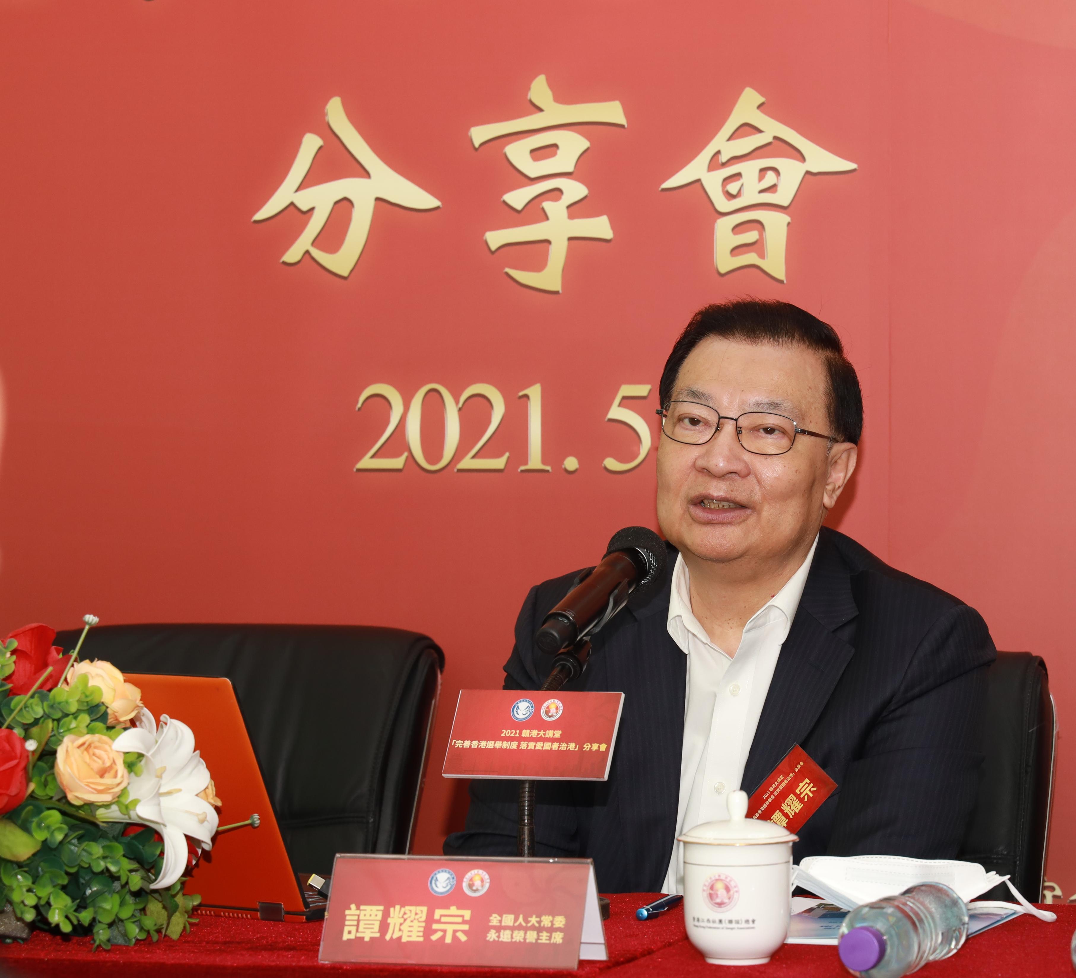 譚耀宗對全國人大常委會修改香港基本法附件一和附件二的基本原則及修改的主要內容、特區選委會組成及產生辦法、特區行政長官選舉及立法會選舉的修改內容等進行了詳細講解,並解釋了與在港同鄉社團密切相關的內容。他表示,新的選舉制度將確保選出愛國愛港、有能力有擔當的人,落實了「愛國者治港」原則,有利於構建更符合香港實際情況、發展需要和廣泛參與的選舉制度,助力香港長期穩定繁榮,確保「一國兩制」實踐行穩致遠。