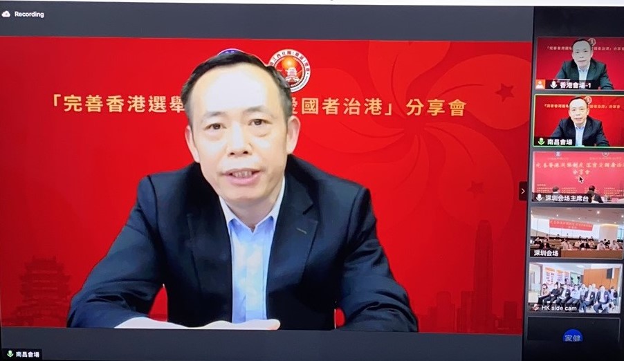 江西海外聯誼會、香港江西社團(聯誼)總會聯合日前主辦「完善香港選舉制度 落實愛國者治港分享會」,全國人大常委、香港江西社團(聯誼)總會永遠榮譽主席譚耀宗應邀主講,他希望各個同鄉社團根據時代發展需要改革創新,吸納人才,為「愛國愛港」注入新鮮血液和強大的力量,也為香港吸納更多內地不同省份的優秀人才,共同建設香港。此次分享會設立香港、深圳、南昌3個會場。