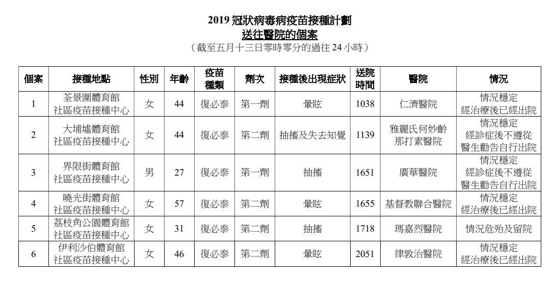 另外,作為背景資料,昨日共有49宗中風或心肌梗塞個案,需入住公立醫院深切治療部、急性中風加護病房和心臟加護病房。有關數字為當日新入院的實際數字,可為公眾提供一個參考對照,讓市民更全面理解在接種疫苗後錄得的相類個案。