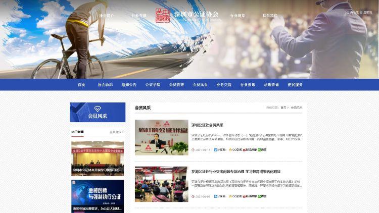 深圳市公證協會網站還設置了協會動態、通知公告、會員風采、業務交流、行業資訊、行業規章、公證學院、會員管理、法規查詢、便民服務等欄目,凸顯宣傳、教育、服務、便民的宗旨。