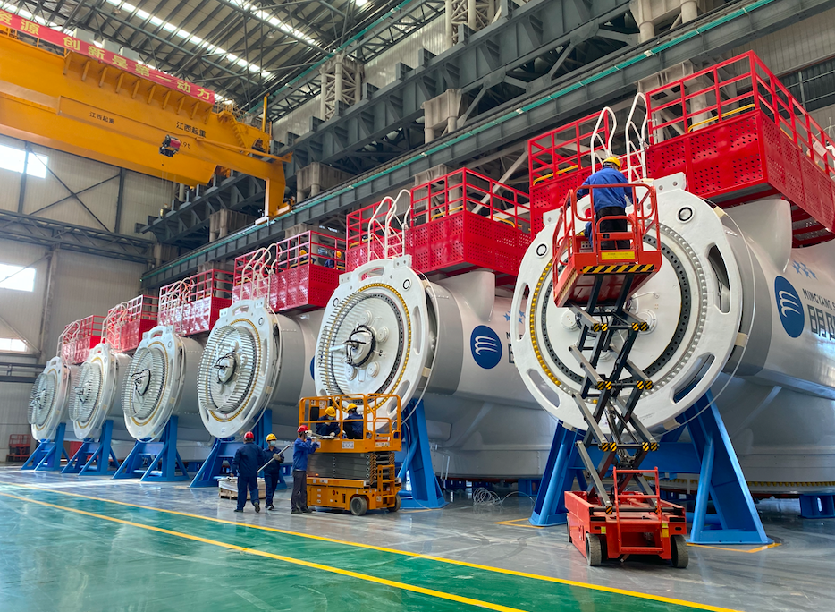 明陽智能海上風電產業園內設備高效運轉、操作者各司其職。