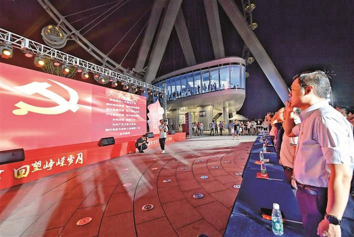 地處灣區核心之核,「首善新安」活力澎湃。5月18日晚,新安把黨課搬到了「灣區之光」摩天輪下,採取音樂黨課的形式,調動視覺、聽覺等多種元素,在開放式的海邊空間創設沉浸式情境,以史串歌,以歌敘史。