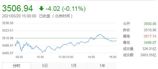 截至收盤,滬指跌0.11%,報3506.94點,成交額達3904億元;深成指漲0.35%,報14535.10點,成交額達4742億元;創指漲0.93%,報3143.62點,成交額達1516億元。