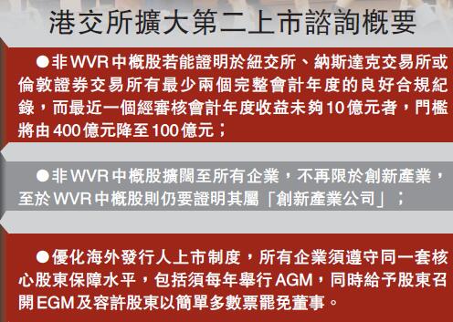 另外,卓佳董事總經理及IPO總監鍾絳虹則認為,針對同股不同權(WVR)制度,港交所加強吸納中概股之餘,也應相應增強對相關股份的制衡,保障投資者。(記者 鄺偉軒)