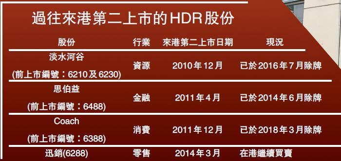 初期HDR形式上市,頗受投行歡迎,但無奈成交始終疏落,觀乎在港上市的4家HDR企業,僅有迅銷1家仍然在港上市,大部分陸續選擇退市。德勤中國華南區主管合夥人歐振興分析,以往來港第二上市的HDR交投疏落,主要是該等股票來港時,只是單把在原有交易所買賣的股票「搬」至香港,沒有同時發行新股;吸收過去發行HDR的經驗,歐振興認為,日後來港上市的中概股,應同時發行新股,增加流動性,發揮最佳的集資功能。