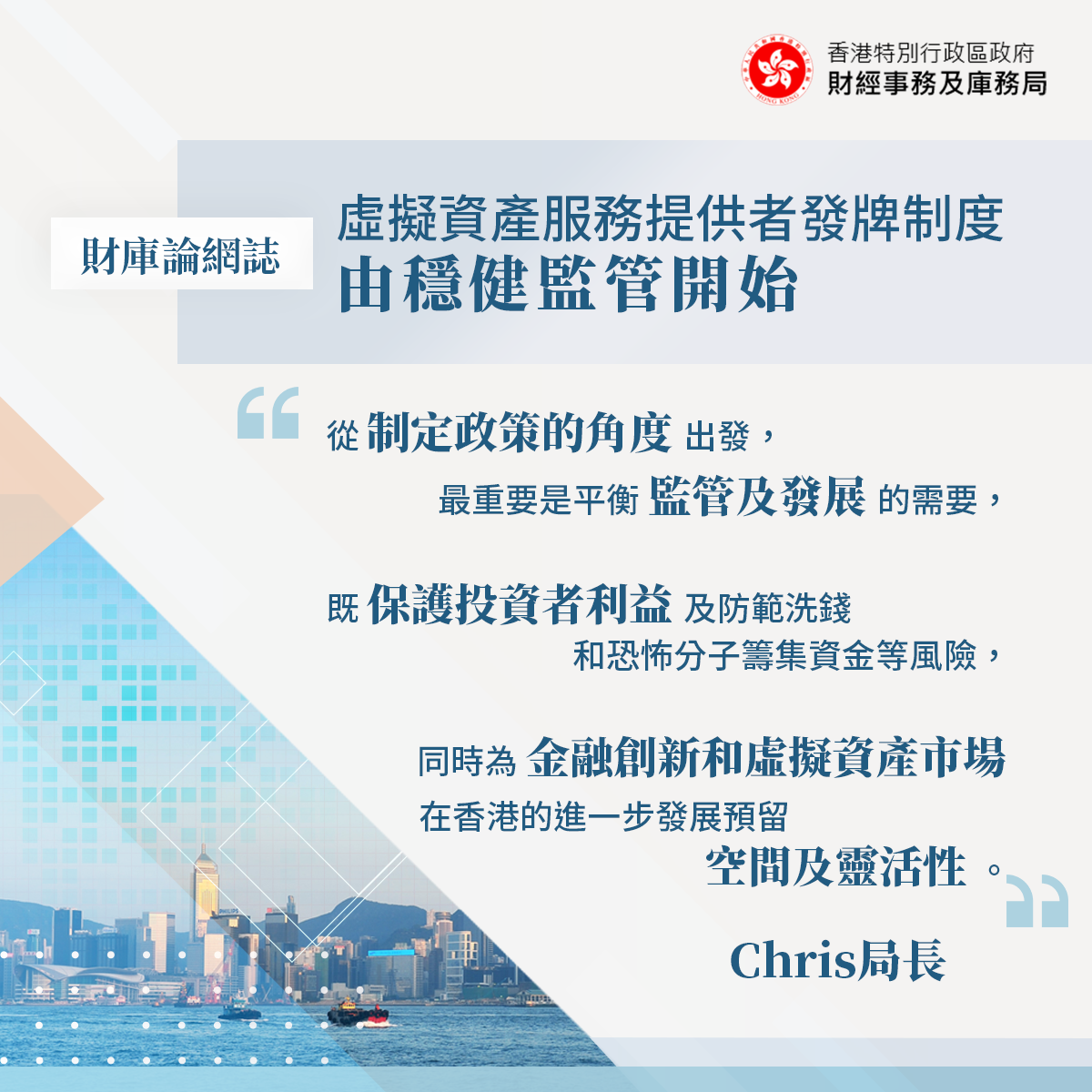 財經事務及庫務局局長許正宇23日以「虛擬資產服務提供者發牌制度——由穩健監管開始」為題撰文,就監管虛擬資產服務提供者(Virtual Asset Service Providers(VASPs))的發牌制度發表意見。以今次諮詢總結為基礎,政府將修訂相關條例草案,擬於下個立法年度提交立法會審議。